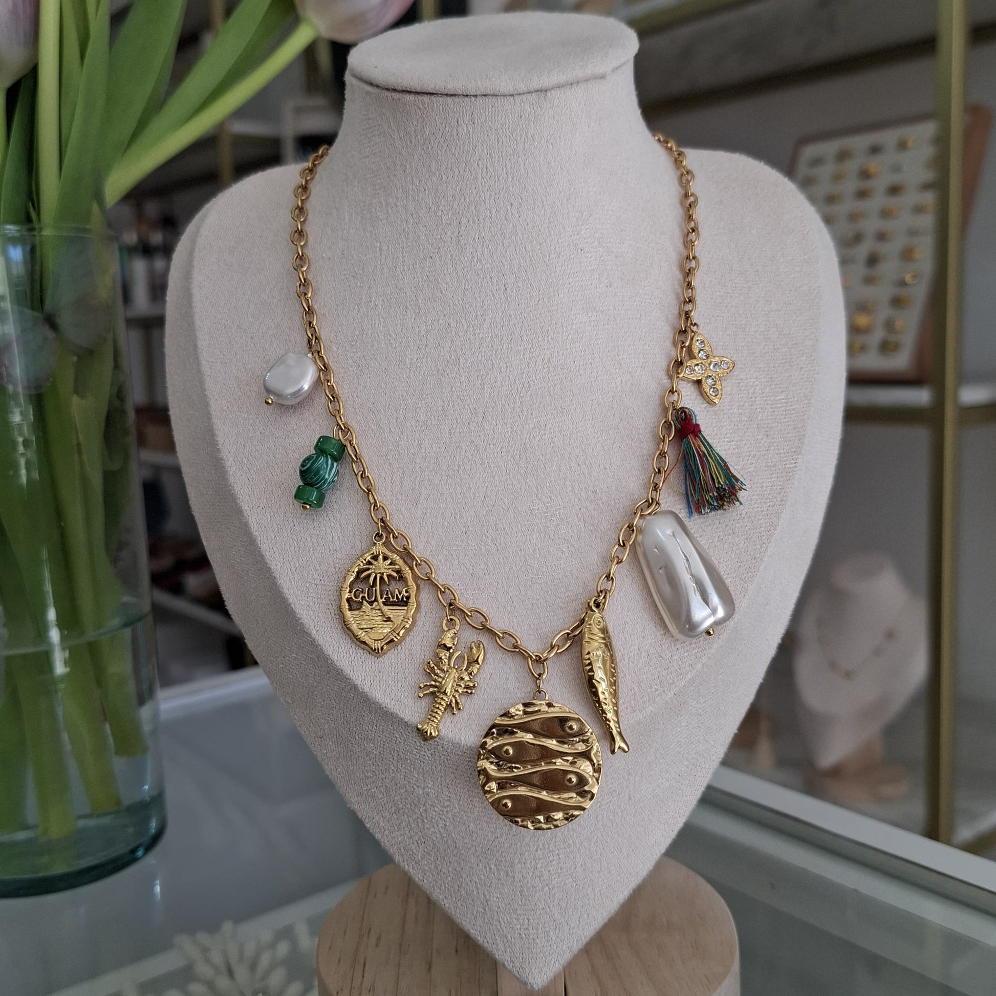 Collar multicharms pescados